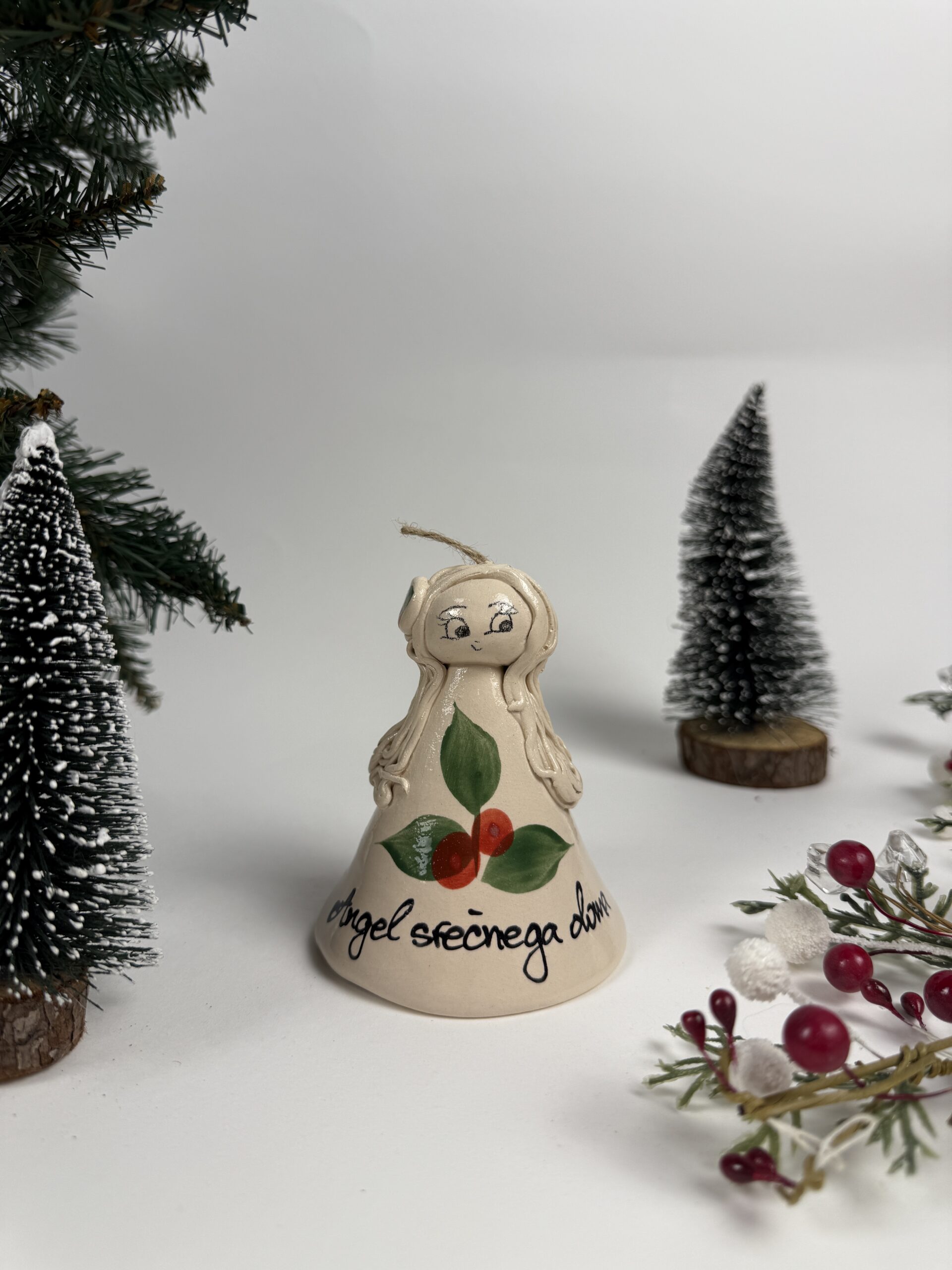 Keramični, unikatni angel narejen iz bele gline, ki ga lahko uporabimo za okras ob različnih priložnostih na različnih mestih, odlično pa se poda tudi na novoletno jelko. Z izdelkom si popestrimo svoj dom po lastni izbiri ali pa angel podarimo sebi dragi osebi in jo spomnimo, da mislimo nanjo. Angel je trden in odporen, saj je narejen iz visoko kvalitetne bele gline ter žgan na visoki temperaturi 1050°C.