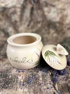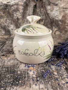 Ročno izdelana keramična doza z ujemajočim pokrovom, popolna za shranjevanje tvojih najljubših bonbončkov. Lepa na pultu, mizi ali polici – kot majhen opomnik, da si vsak dan zaslužiš nekaj sladkega.