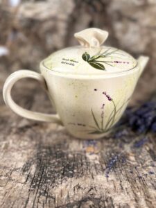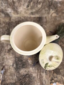 Velik Čajnik zaradi svoje namenskosti predstavlja odlično darilo, saj jo vsakdo lahko uporabi sebi primerno in potrebno. V čajniku si lahko pripravimo vse vrste čaja. Izdelek je narejen iz visoko kvalitetne bele gline in žgan na visoki temperaturi 1050°C, zaradi česar je Čajnik resnično trden, odporen ter primeren za uporabo v mikrovalovni pečici in pomivalnem stroju. Višina čajnika brez pokrova :13,5cm Premer z ročajem:31cm Brez ročaja:17cm Pokrov širina:16,5cm Pokrov višina:8,5 cm Višina čajnika z pokrovom:22cm