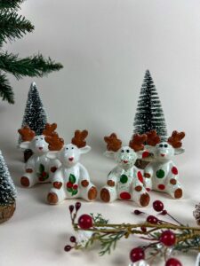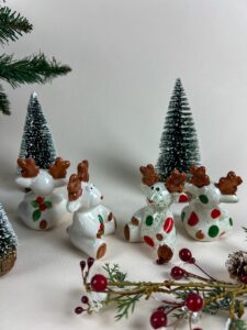 Keramični, unikatni jelenček narejen iz bele gline, ki ga lahko uporabimo za okras ob različnih priložnostih na različnih mestih.
