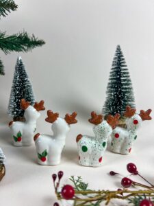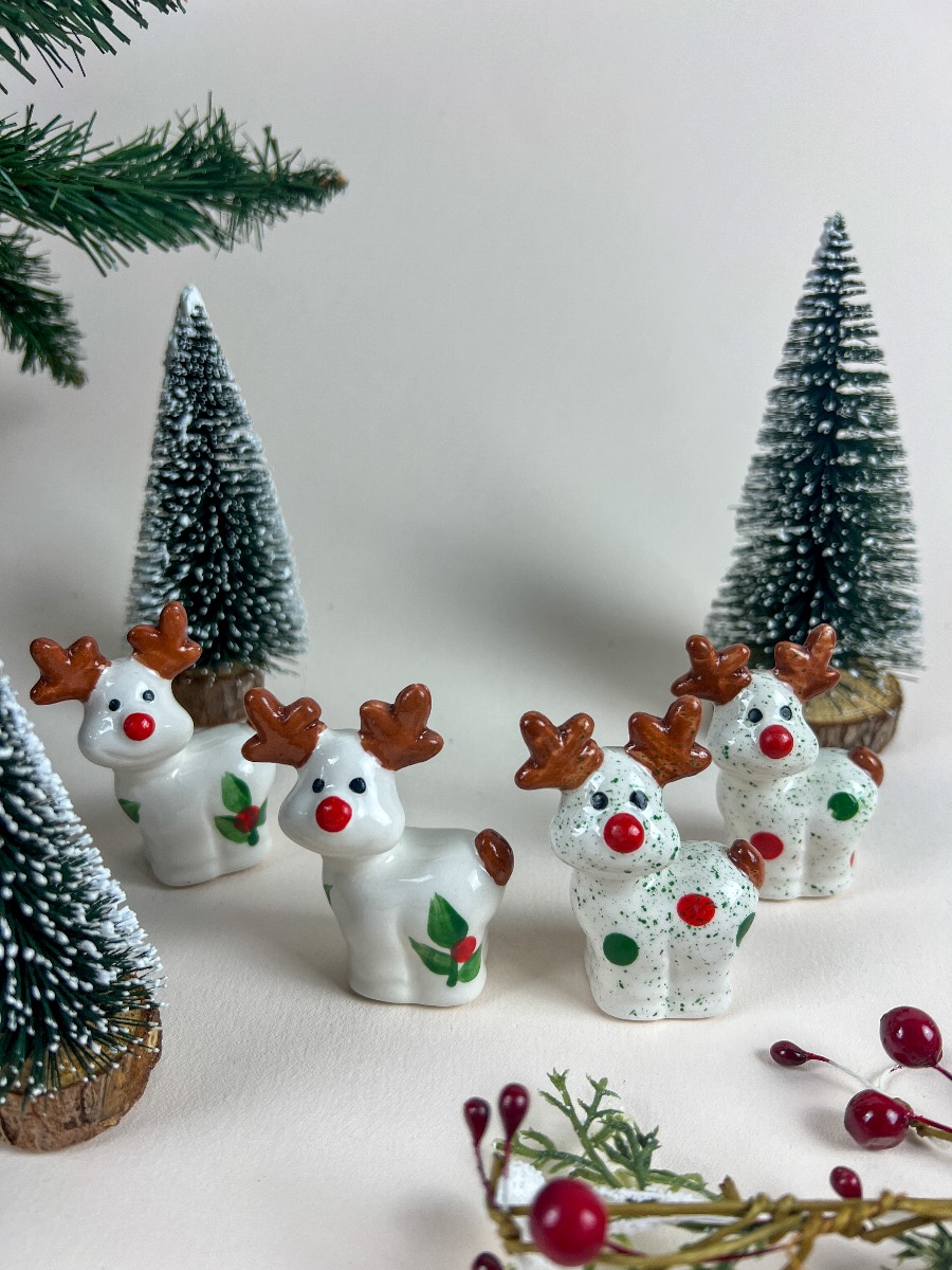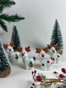 Keramični, unikatni jelenček narejen iz bele gline, ki ga lahko uporabimo za okras ob različnih priložnostih na različnih mestih.