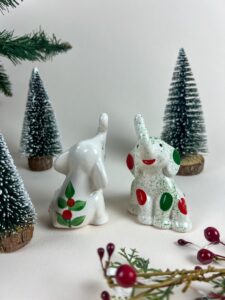 Keramični, unikatni slon narejen iz bele gline, ki ga lahko uporabimo za okras ob različnih priložnostih na različnih mestih.