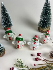 Snežaki so izdelani ročno in unikatno poslikani tako, da si lahko izbereš takega, ki bo samo tvoj ali pa ga z dobro mislijo, podariš naprej.