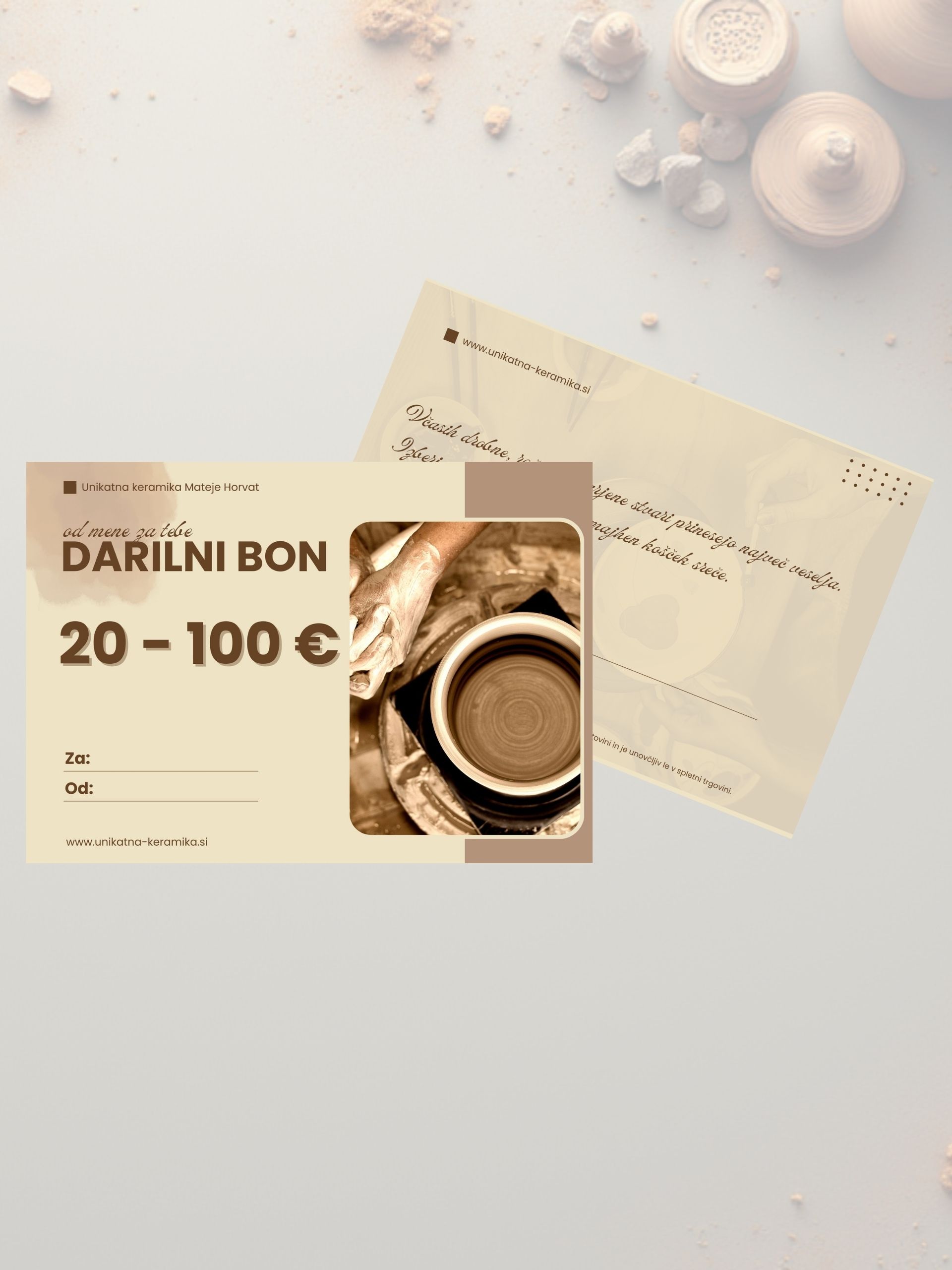 Fizični darilni bon prejmete s kodo, ki je unovčljiva le na spletni strani.