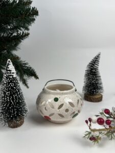 Lepa, enostavna, praktična lanterna . Ravno enostavnost te lanterne očara in olepša trenutke pogleda na vaše prostore. Zaradi uporabe visoko kvalitetne bele gline ter žganja na visoki temepraturi – 1000°C, Izdelek lahko operete v pomivalnem stroju, Zaradi ročnega dela se izdelki lahko razlikujejo v poslikavi .Ljubka lanterna za čajno svečko, ki jo lahko uporabljate vsakodnevno.