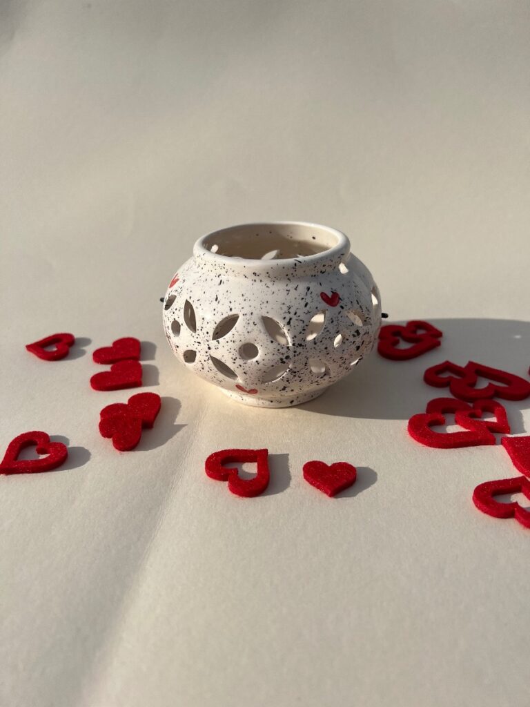 Lepa, enostavna, praktična lanterna . Ravno enostavnost te lanterne očara in olepša trenutke pogleda na vaše prostore. Zaradi uporabe visoko kvalitetne bele gline ter žganja na visoki temepraturi – 1000°C, Izdelek lahko operete v pomivalnem stroju, Zaradi ročnega dela se izdelki lahko razlikujejo v poslikavi .Ljubka lanterna za čajno svečko, ki jo lahko uporabljate vsakodnevno. Premer: 10cm