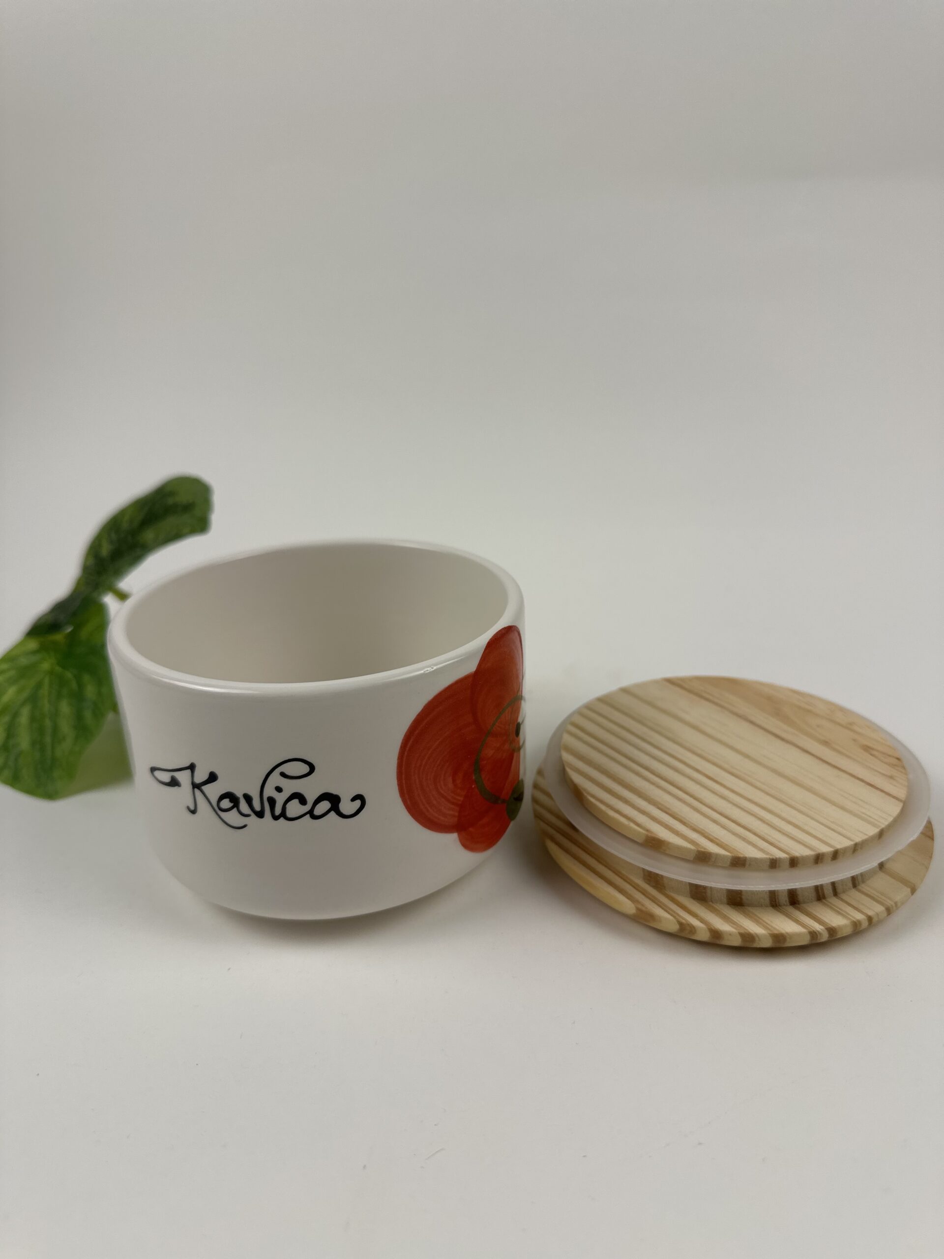 Ročno izdelana keramična mala doza s pokrovom, primerna za shranjevanje sladkorja, soli, začimb ali drugih drobnih dodatkov, ki jih želiš imeti pri roki ali lepo postaviti na mizo.