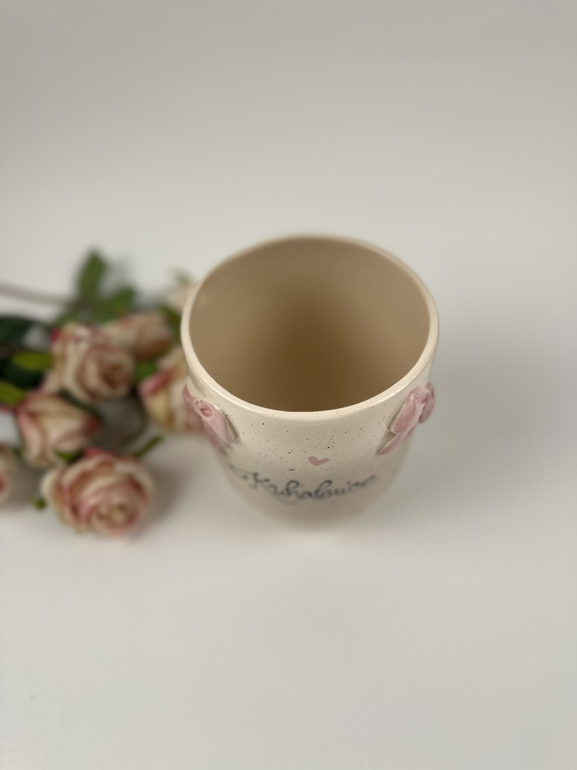 Vse se je začelo v majhni kletni sobici pri moji mami. Tam sem pred 30 leti prvič prijela v roke glino — ne vedoč, da bom iz nje oblikovala ne le skodelice, temveč celotno življenjsko pot. Prvi poskusi so bili vse prej kot popolni (pa tudi zid je kdaj dobil svojo porcijo gline). A nikoli nisem izgubila tiste notranje iskrice — ljubezni do ustvarjanja in zaupanja, da lahko izpod rok vedno znova nastane nekaj čudovitega.