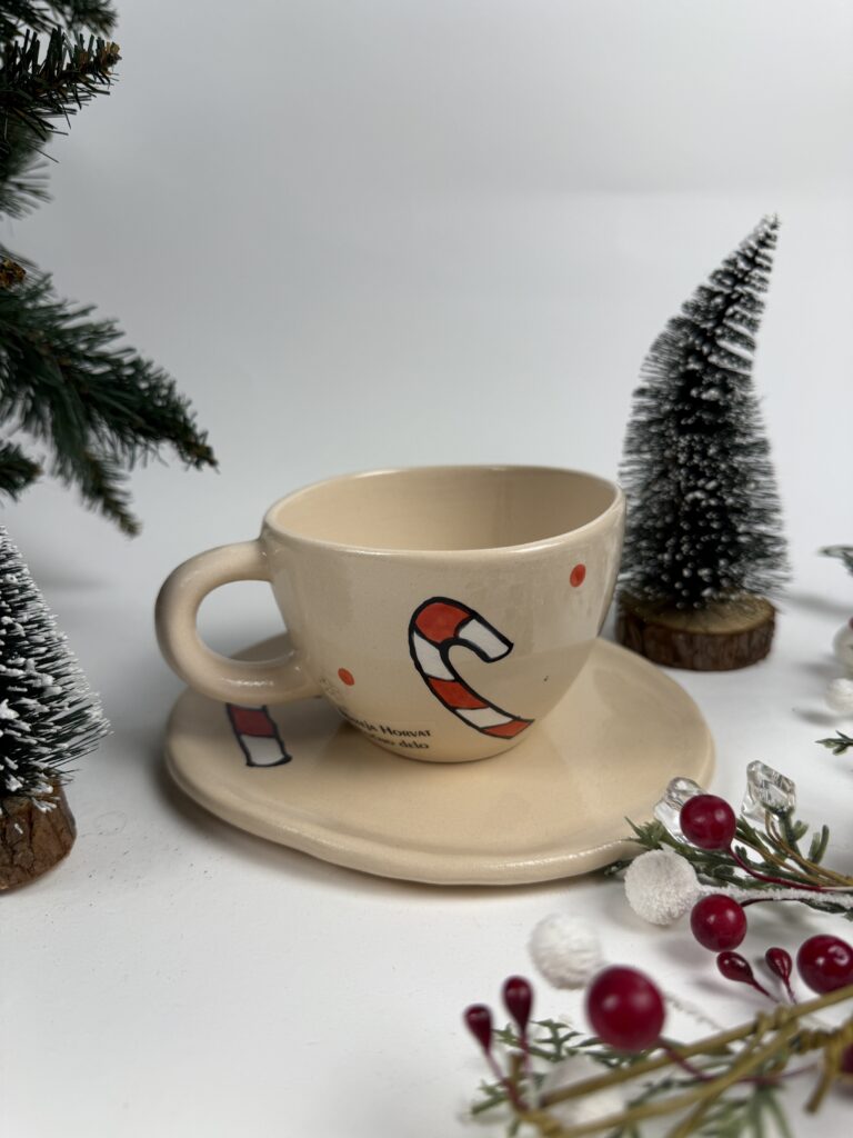 Ročno izdelana keramična skodelica s podstavkom, popolna za tiste trenutke, ko si vzameš čas zase. Ravno prav velika za tvojo kavo ali mini čajni obred.