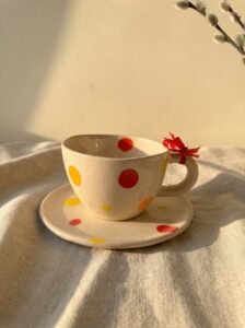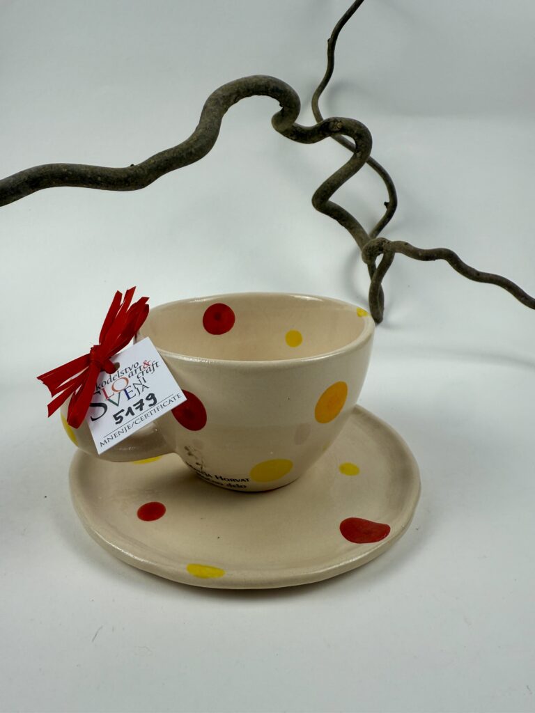 Ročno izdelana keramična skodelica s podstavkom, popolna za tiste trenutke, ko si vzameš čas zase. Ravno prav velika za tvojo kavo ali mini čajni obred.