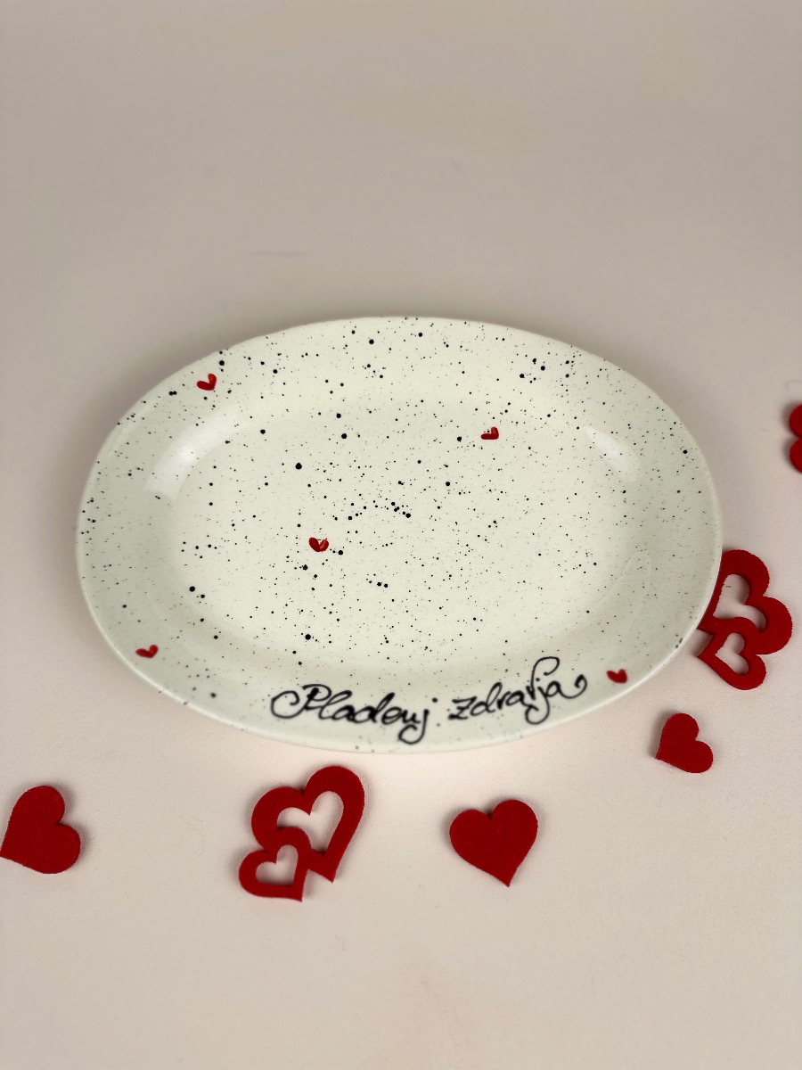 Ročno izdelan ovalni pladenj, ki ga lahko uporabiš za postrežbo prigrizkov, piškotov, drobnih dobrot ali kot eleganten prostor za nakit.