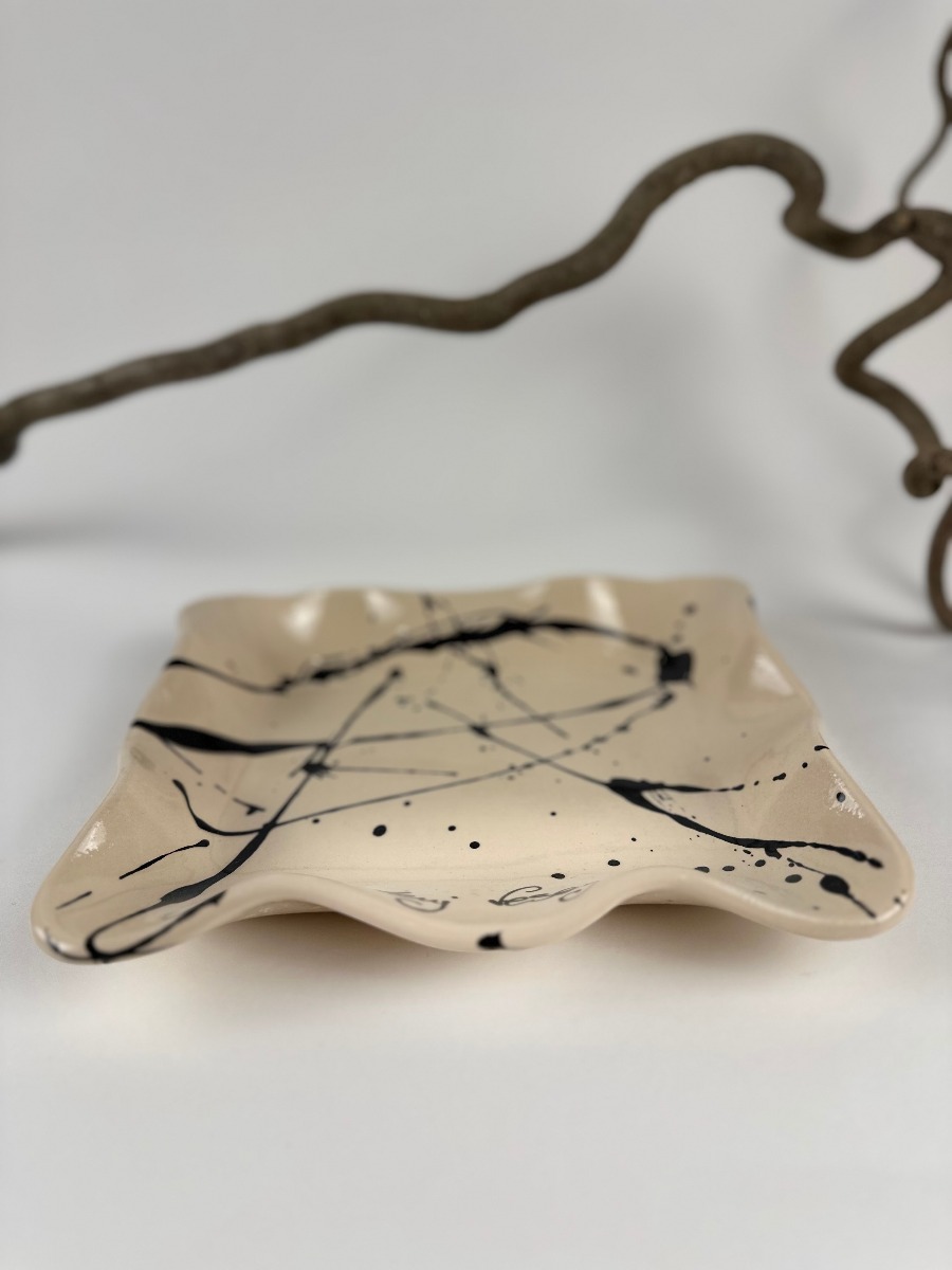 Ročno izdelan keramični pladenj, primeren za vsakdanje trenutke ali posebne priložnosti.