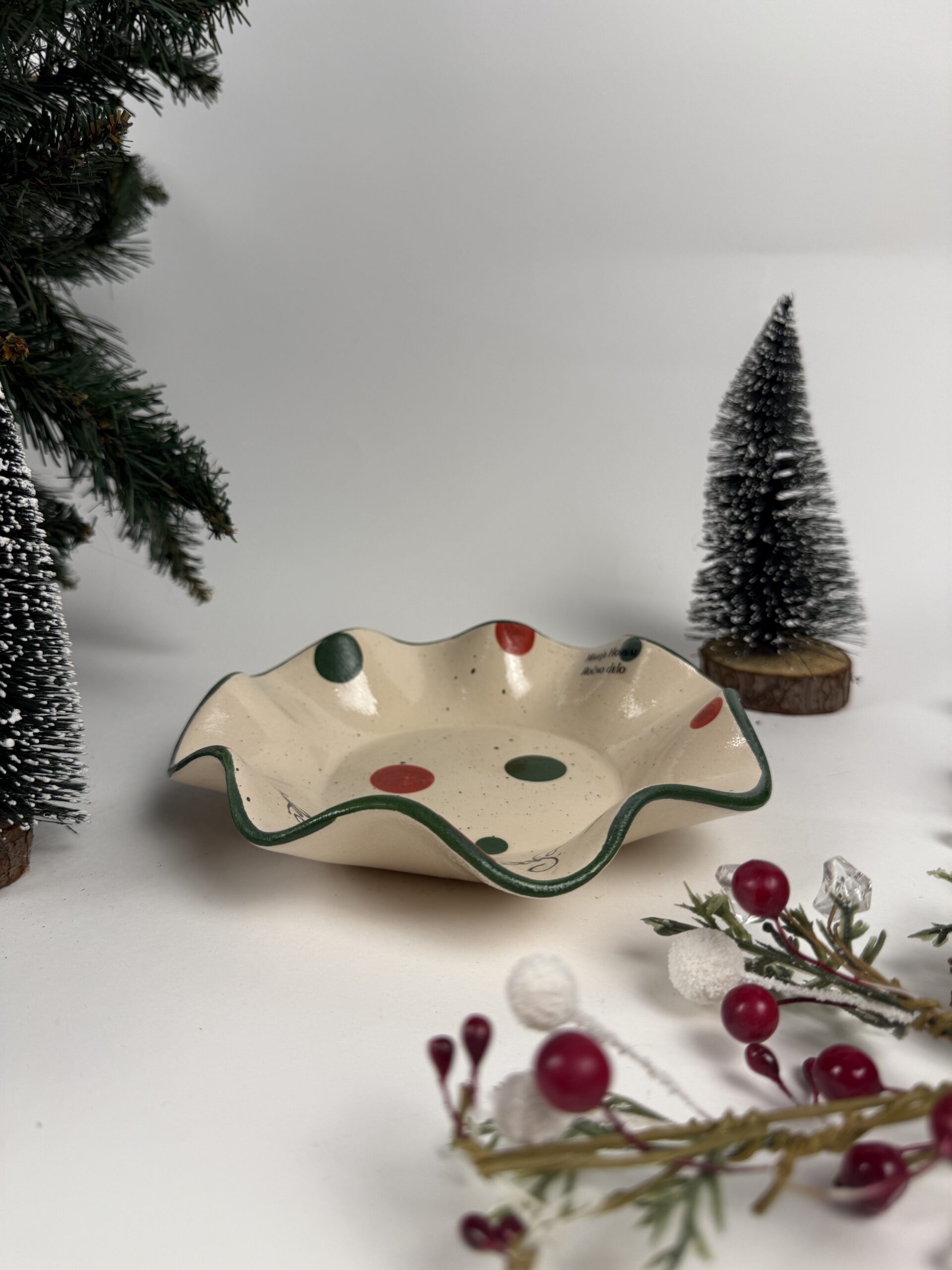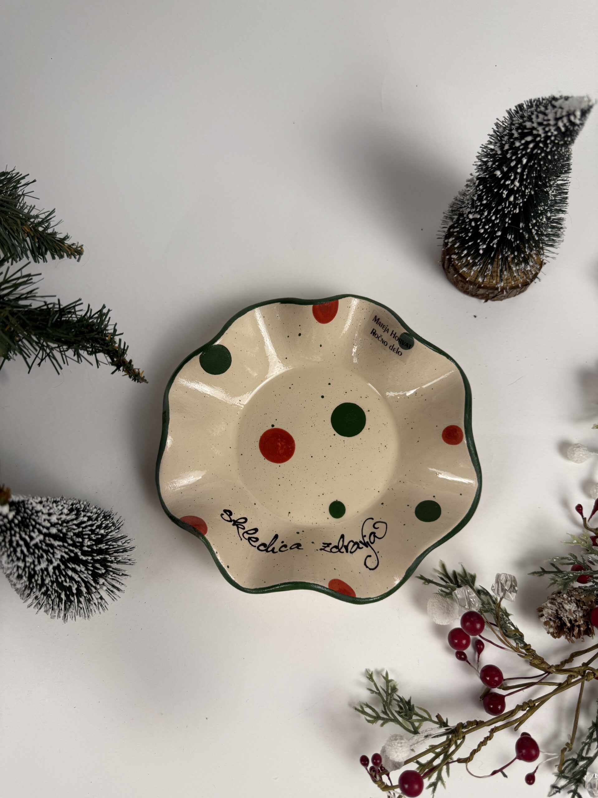 Ročno izdelana mini keramična valovita skledica, ustvarjena za drobne stvari, ki naredijo trenutek poseben. Idealen izbor za postrežbo oreščkov, sadja, omak, sladkih ali slanih grižljajev. Zaradi svoje prikupne oblike in nežnega dizajna je popolna tudi kot eleganten dodatek na mizi ali kot ljubko darilo — še posebej, če jo personaliziraš.