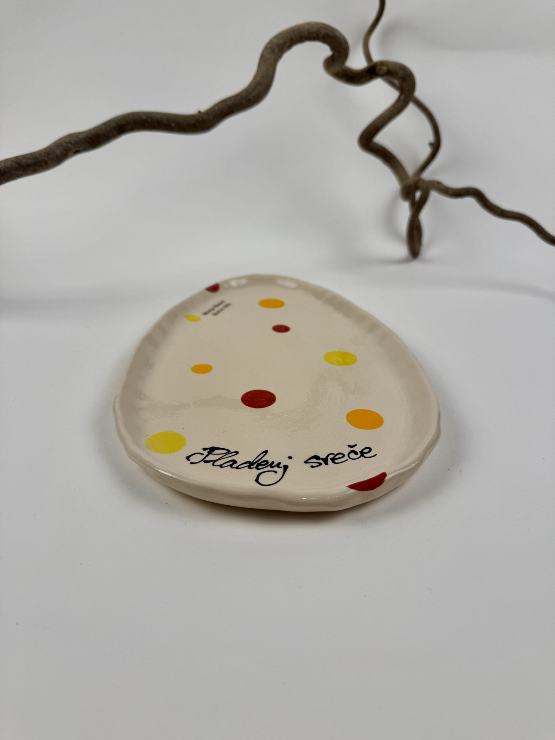 Ročno izdelan mini keramični pladenj z nizkim robom, popoln za drobne vsakdanje trenutke.