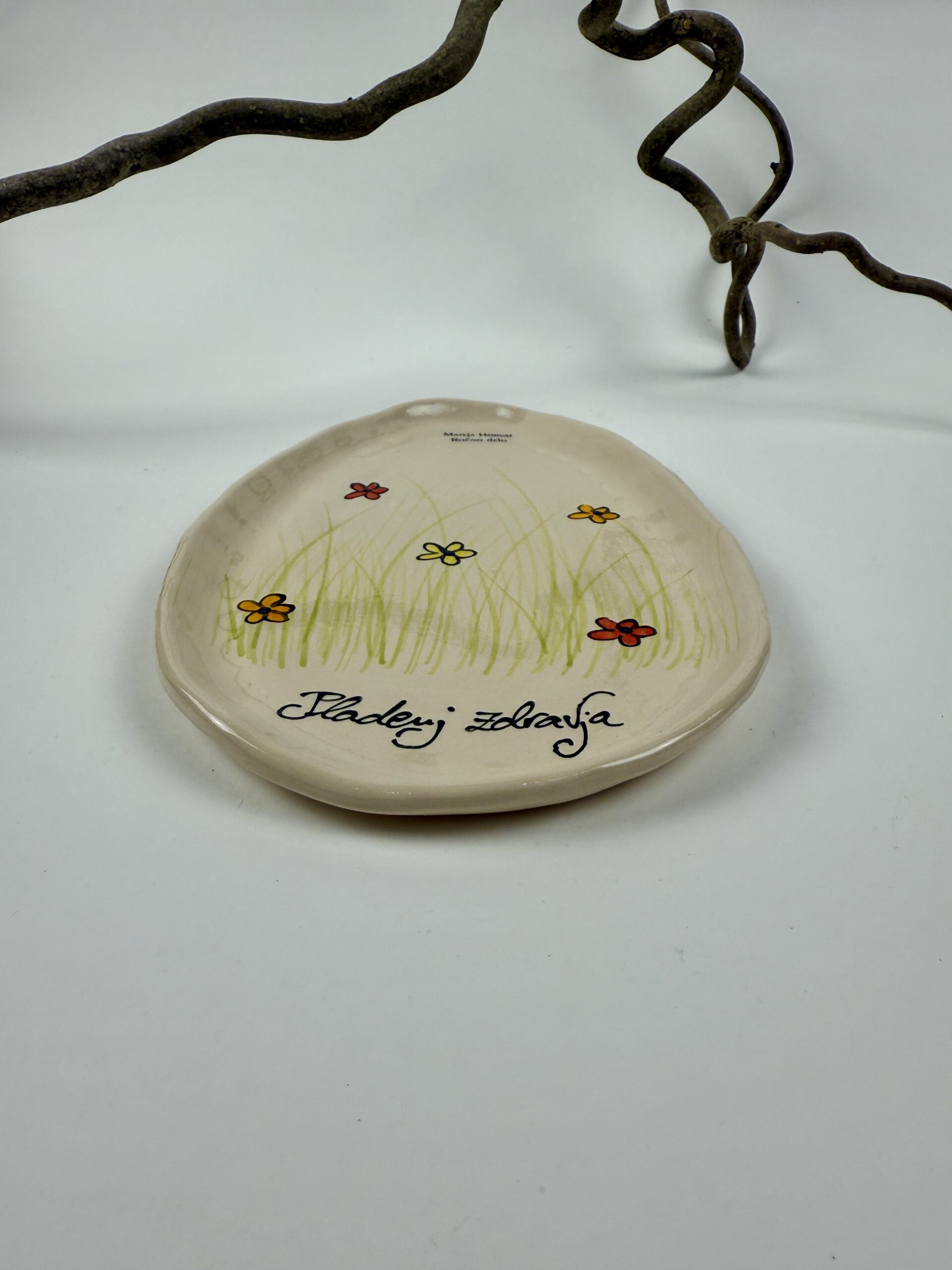 Ročno izdelan mini keramični pladenj z nizkim robom, popoln za drobne vsakdanje trenutke.