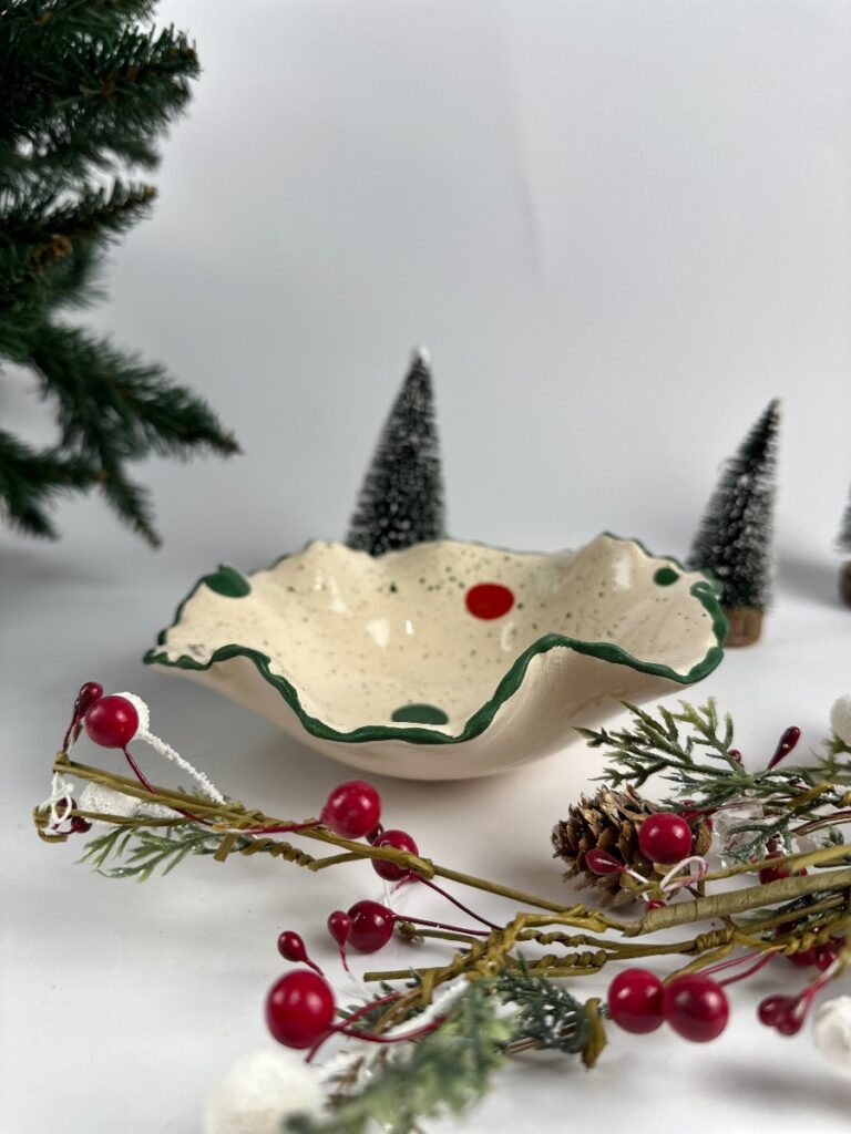 Ročno izdelana keramična skledica, ki je čvrsta, a hkrati igriva. S svojo zaobljeno obliko in rahlo zaokroženim dnom ostane stabilna, a se nežno zaziba, ko jo premakneš – zato ji pravimo kar Plesalka. Lepa izbira za serviranje prigrizkov, sadja, sladkih ali slanih dobrot, pa tudi kot poseben kos, ki vedno pritegne pozornost.