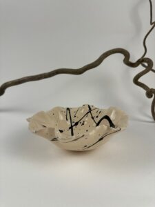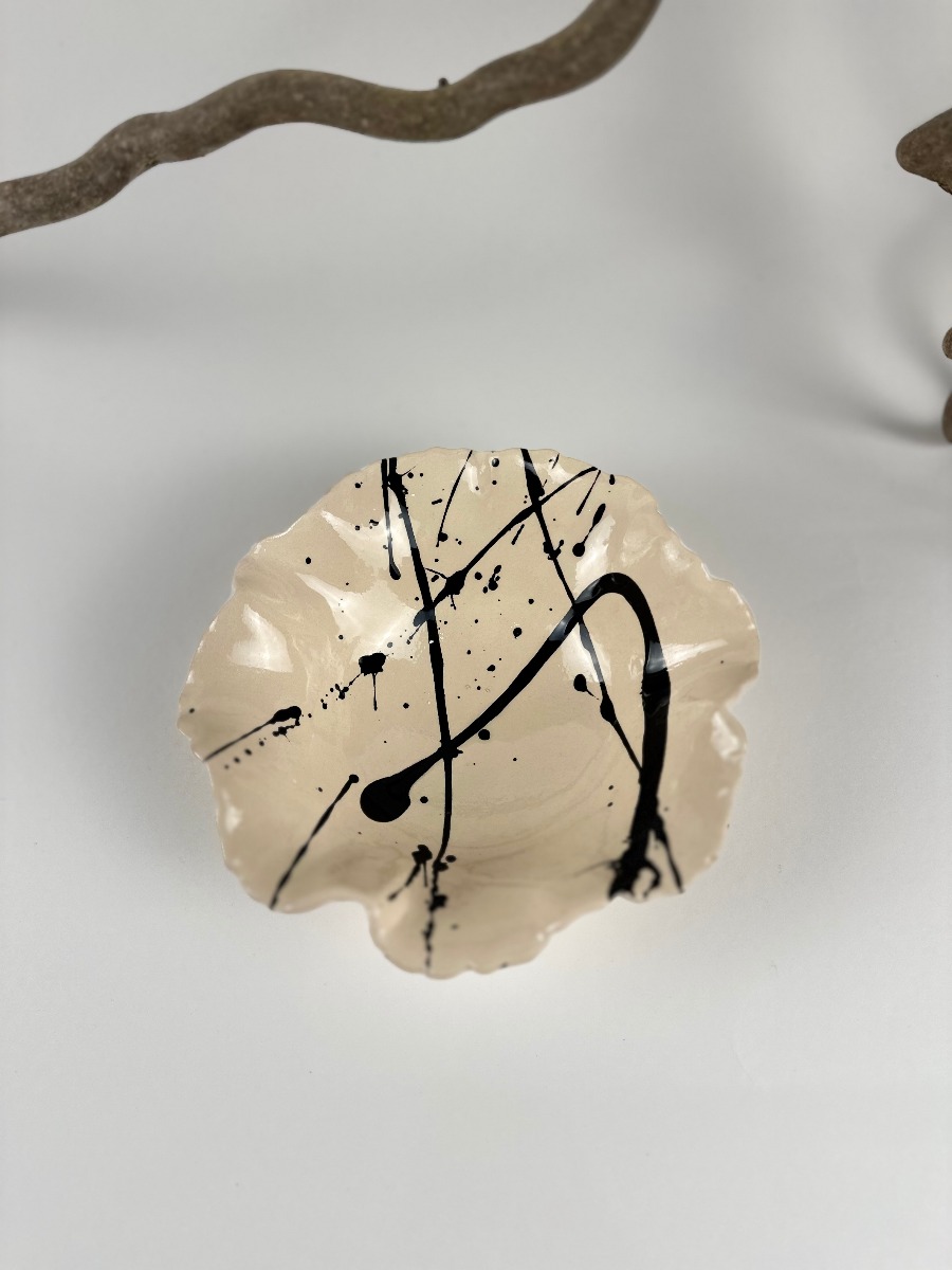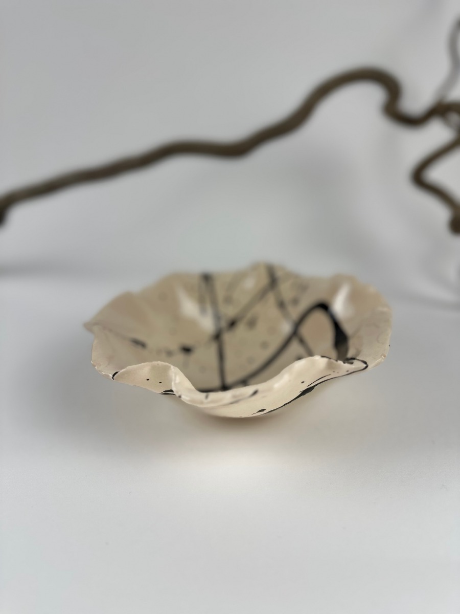 Ročno izdelana keramična skledica, ki je čvrsta, a hkrati igriva. S svojo zaobljeno obliko in rahlo zaokroženim dnom ostane stabilna, a se nežno zaziba, ko jo premakneš – zato ji pravimo kar Plesalka. Lepa izbira za serviranje prigrizkov, sadja, sladkih ali slanih dobrot, pa tudi kot poseben kos, ki vedno pritegne pozornost.