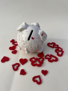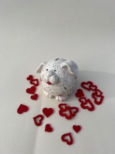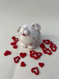 Super lep šparovček. Izdelan je iz gline in ročno pobarvan. Reža za kovance je na vrhu in ima gumijasto zapiranje na dnu. Denar je torej mogoče odstraniti, ne da bi poškodovali šparovček. Razveselite svoje bližnje, prijatelje, sodelavce ali poslovne partnerje ter jim ob posebni priložnosti ali brez razloga podarite ta čudoviti hranilnik . Hranilnik je ročno izdelan iz visoko kvalitetne bele gline ter žgan na temperaturi – 1000°C, kar izdelku daje trdnost in odpornost. Višina: 10,5cm Širina: 11,5cm
