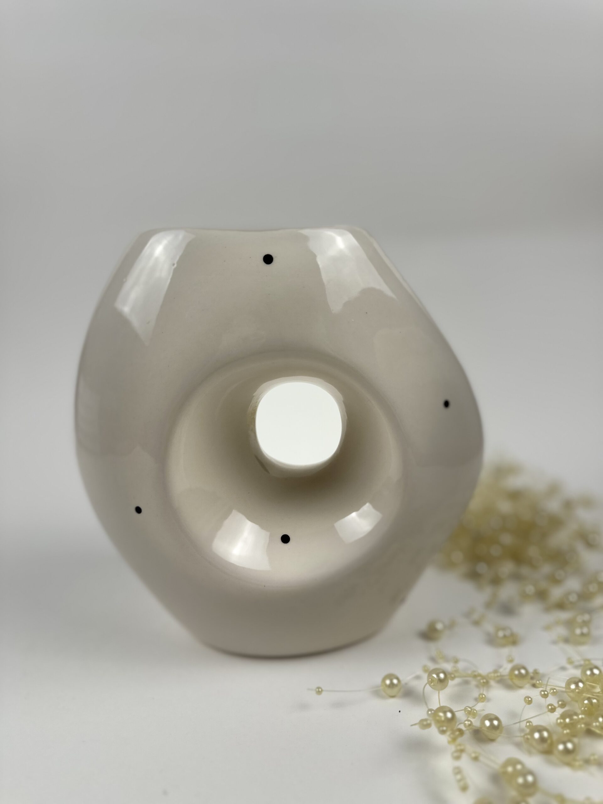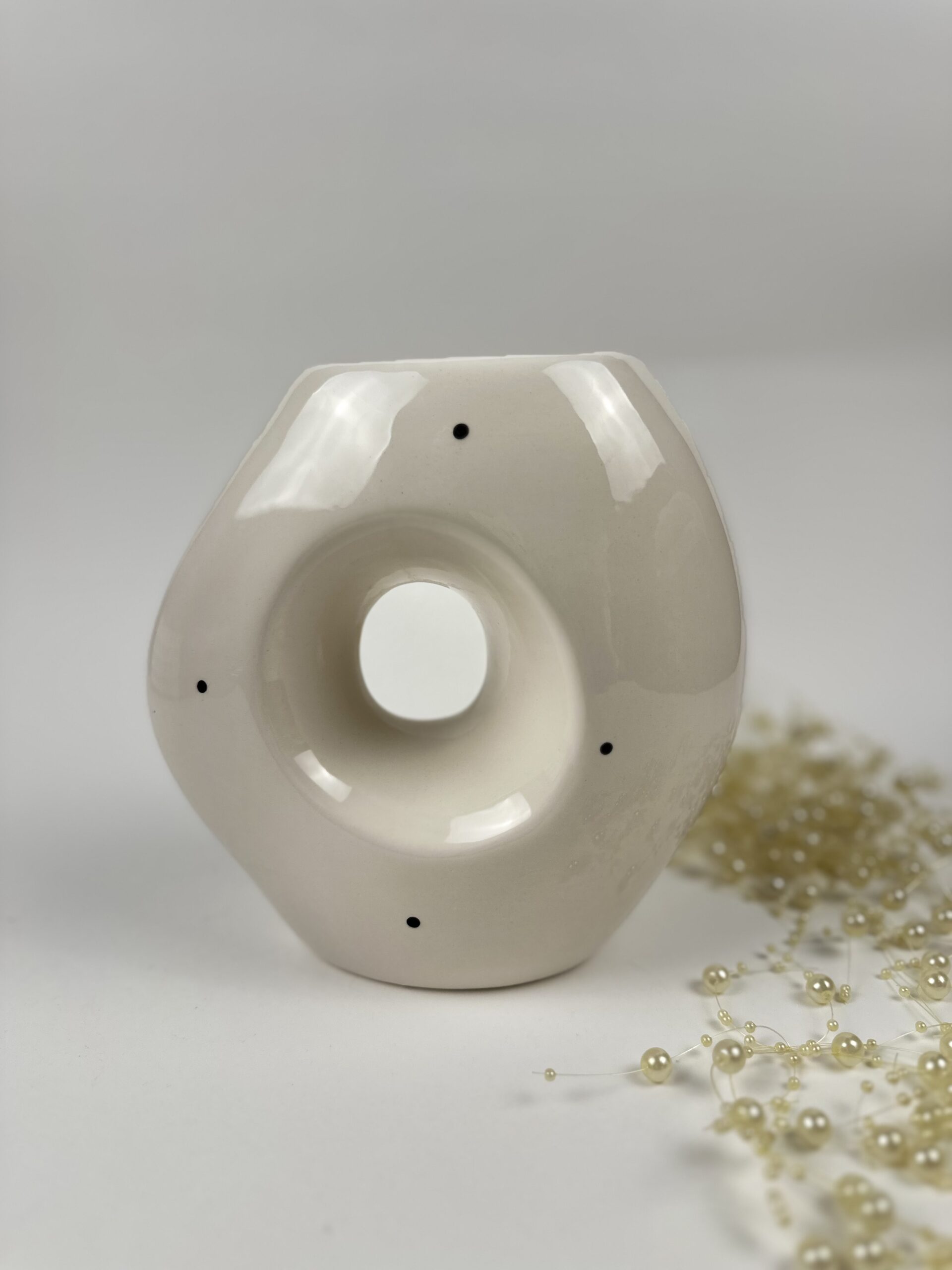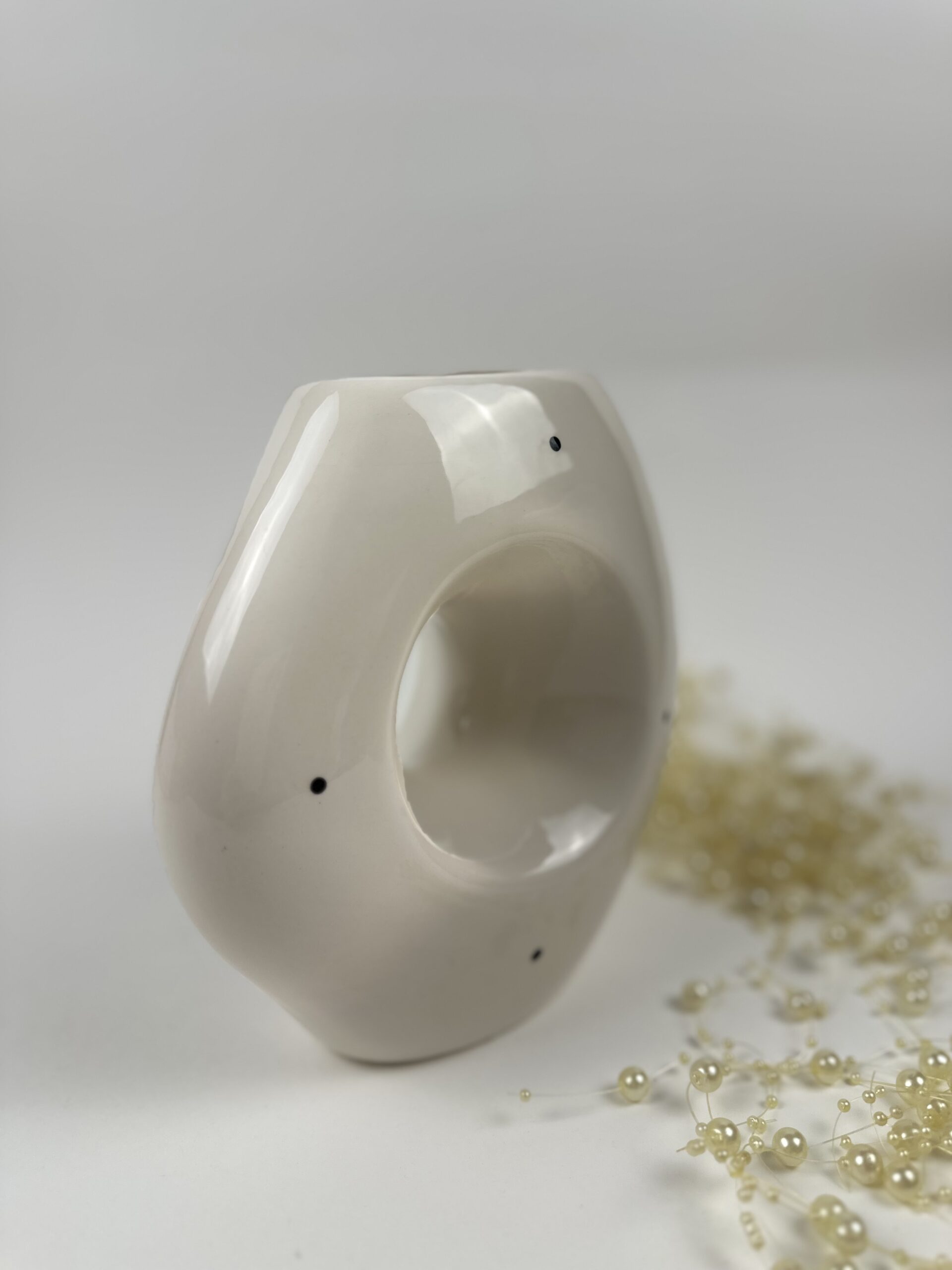 Hole je skulpturalna vaza z mehko odprtino v sredini — minimalistična, a takoj opazna. Popolna kot dekor sama ali z šopkom rožic.