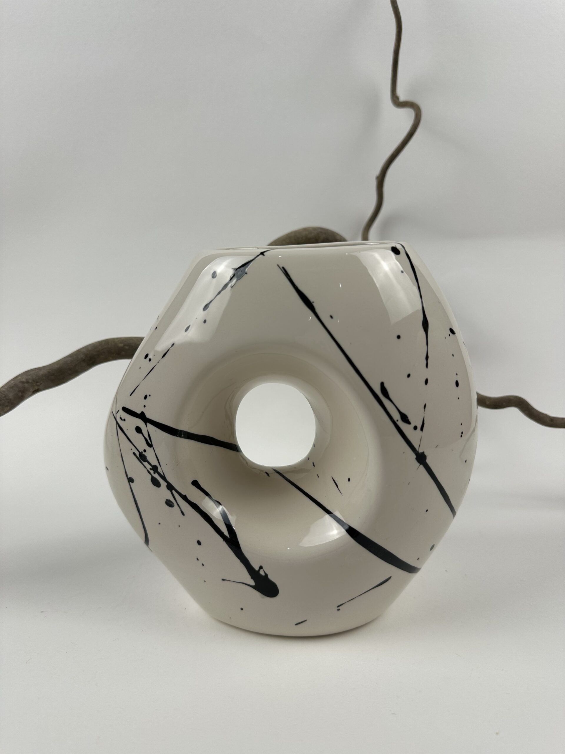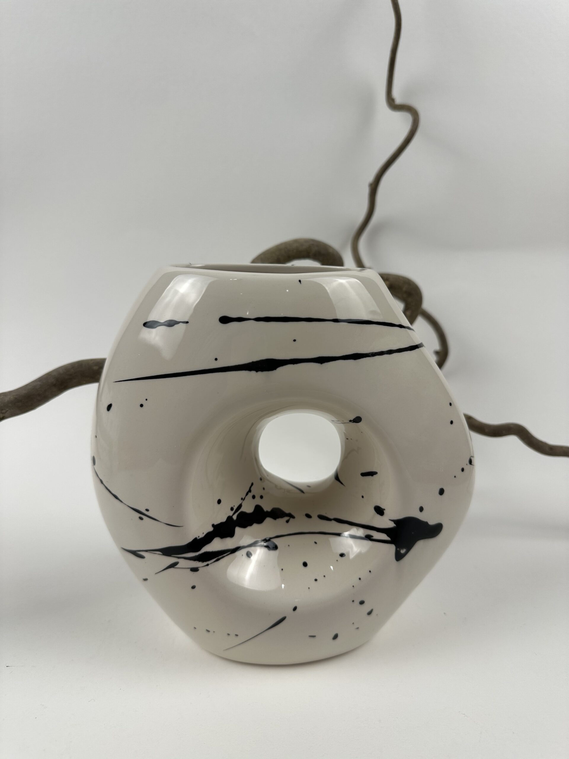 Hole je skulpturalna vaza z mehko odprtino v sredini — minimalistična, a takoj opazna. Popolna kot dekor sama ali z šopkom rožic.