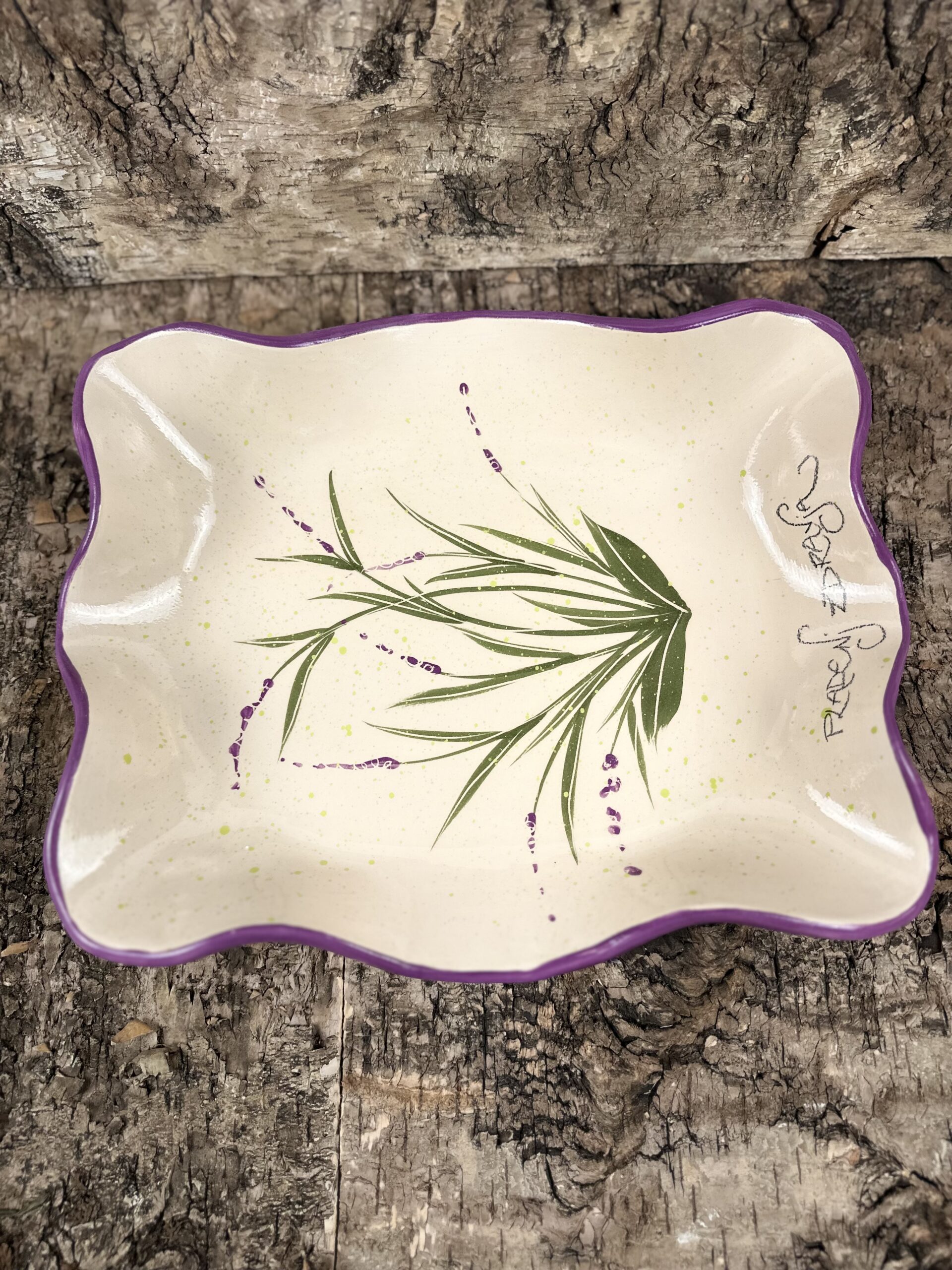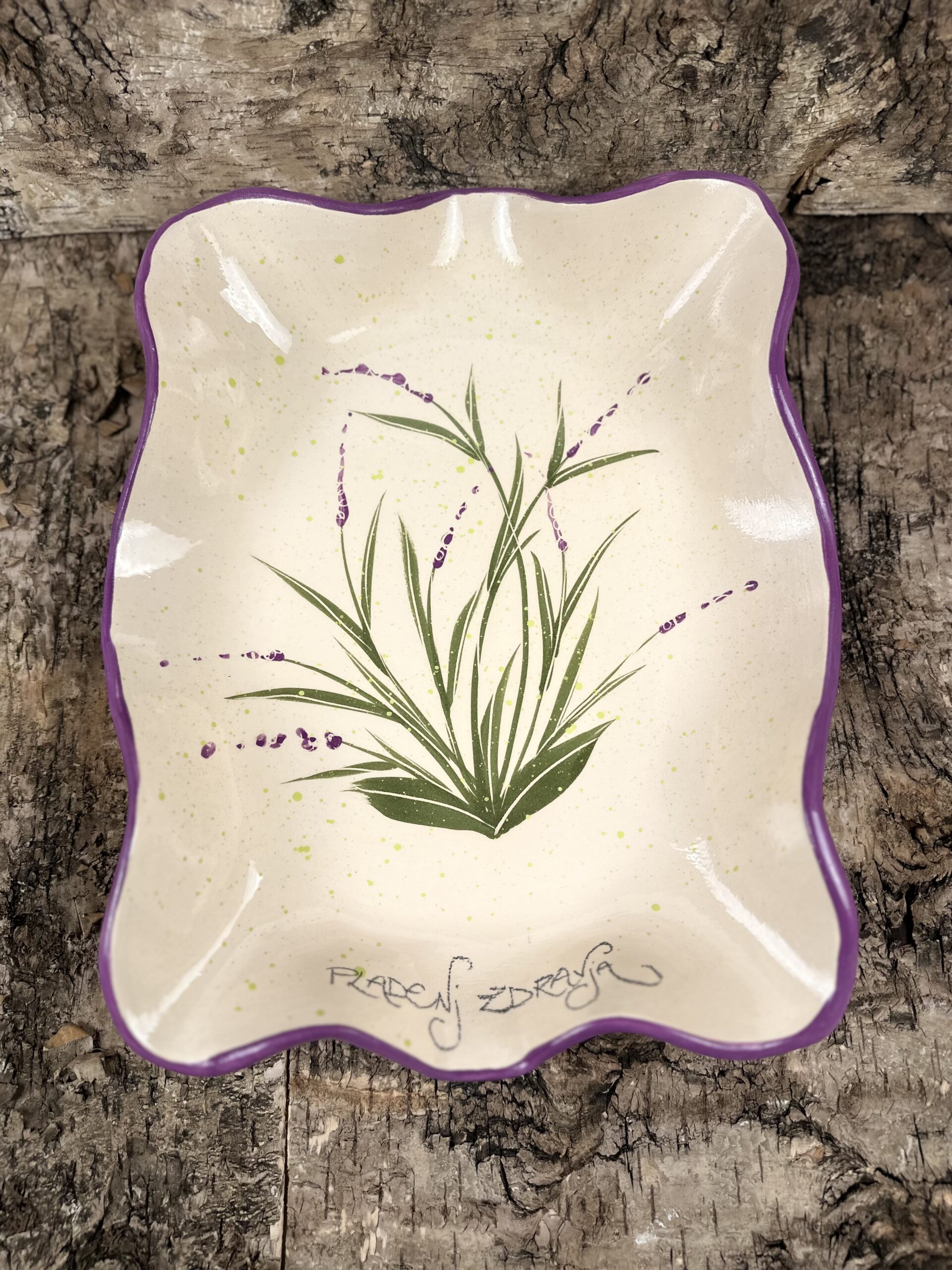 Ročno izdelan velik keramični pladenj, ustvarjen za posebne priložnosti ali vsakdan, ki si ga želiš malo polepšati. Popoln za serviranje peciva, sadja, narezkov ali kot osrednji dekorativen kos na mizi.