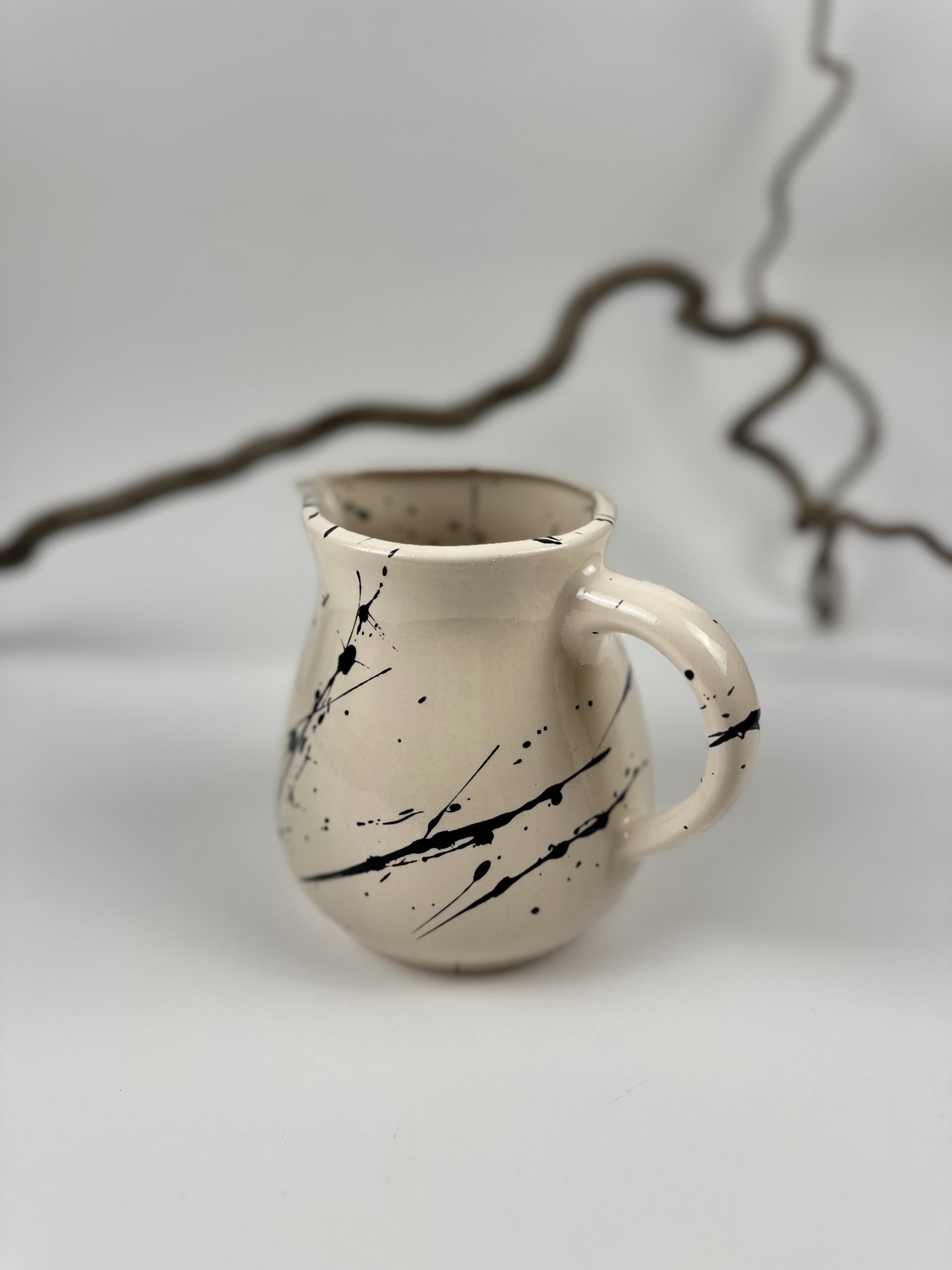 Unikatni, keramični vrček iz bež gline, primeren za vsakodnevno uporabo v kuhinji, kot tudi za popestritev drugih kotičkov vašega doma.Popestrite si jutranjo kavo ali čaj z večnamenskim unikatnim vrčkom za mleko.