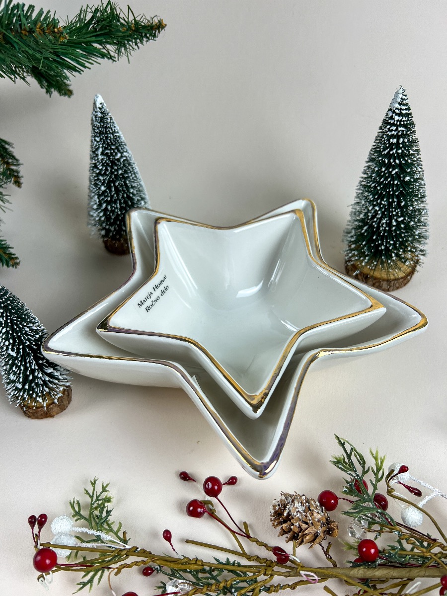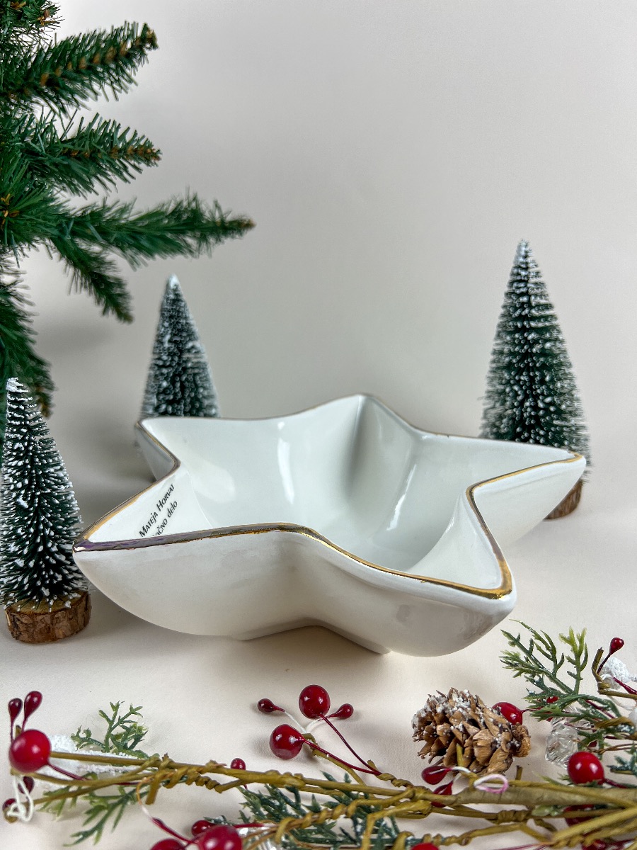 Večnamensko, ročno poslikana zvezda, ki je pozlačena z 12k zlatom.